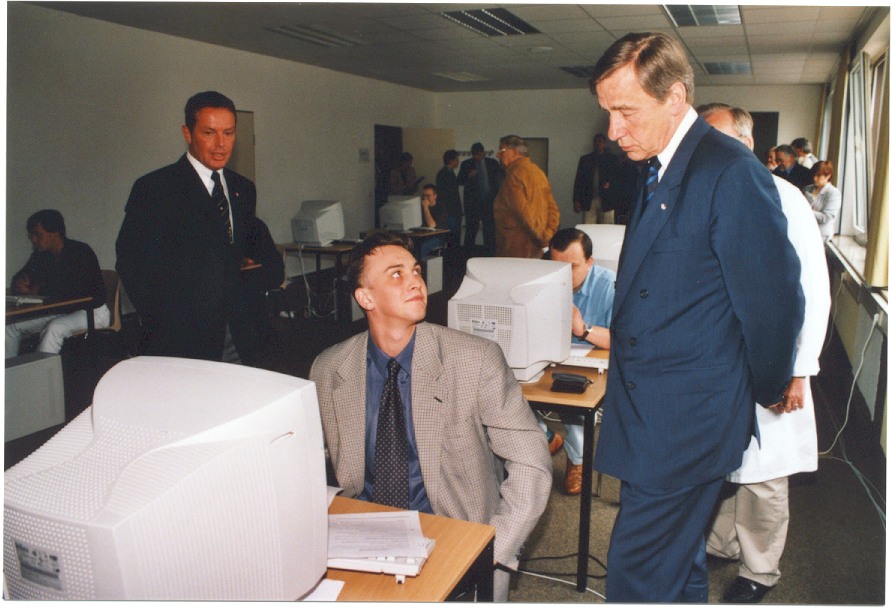 Der Ministerpräsident des Bundeslandes Nordrhein-Westfalen, Herr Wolfgang Clement, besucht im Juni 2001 die Bildungsstätte anlässlich seiner "Ausbildungstour". Er startet die "Homepage" der Bildungsstätte.
