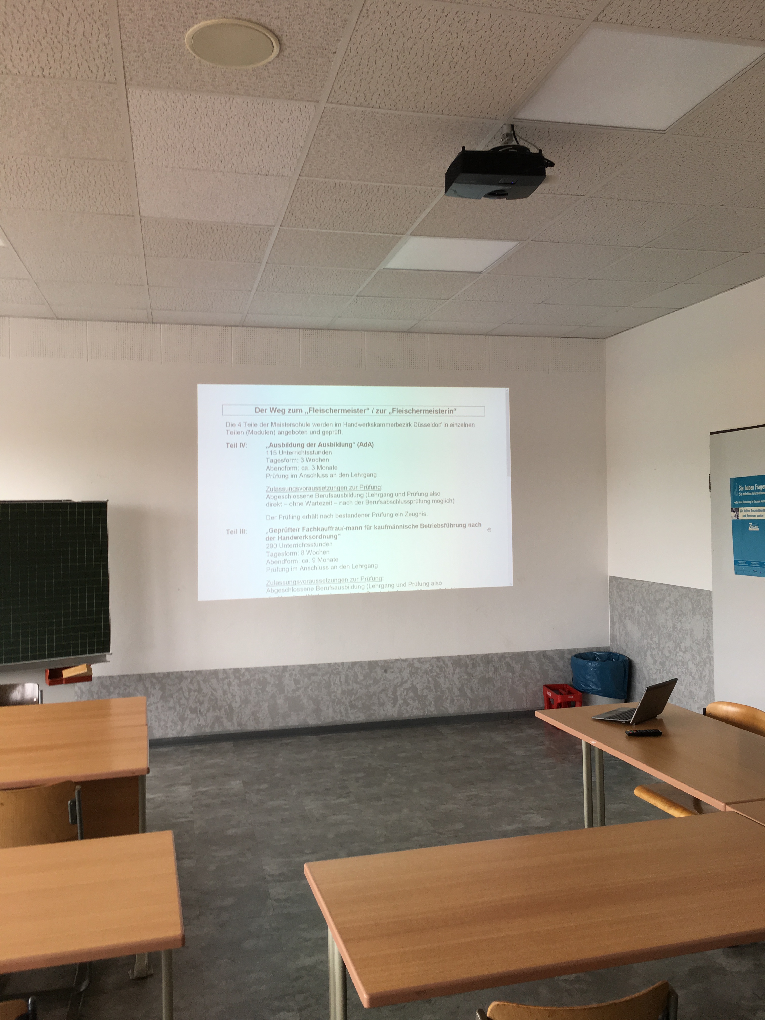 Seit dem 01.01.1994 werden in Kooperation mit der Handwerkskammer Düsseldorf Lehrgänge zur Vorbereitung auf die Meisterprüfung im sogenannten Modulverfahren ("MEISTER 2000") in Tages- und Abendform durchgeführt.